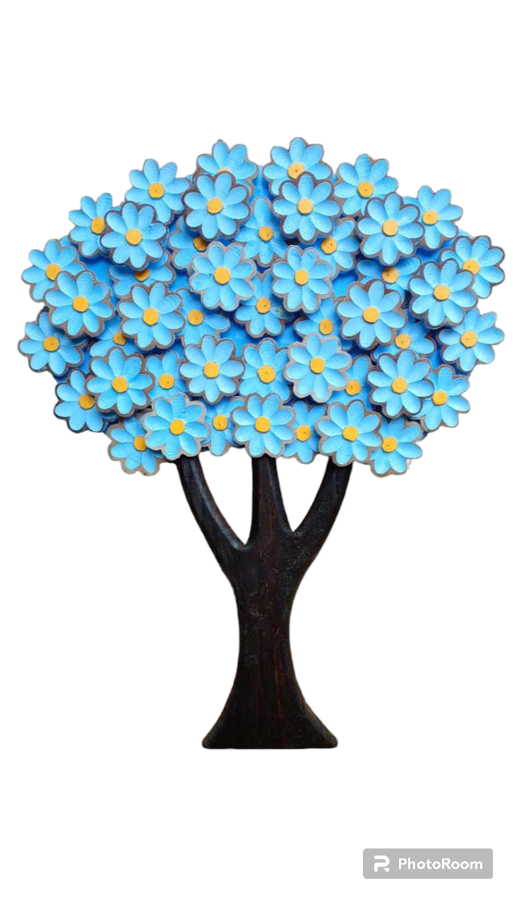 Árvore da vida azul claro é um quadro de rosas de madeira para decoração de ambientes internos.