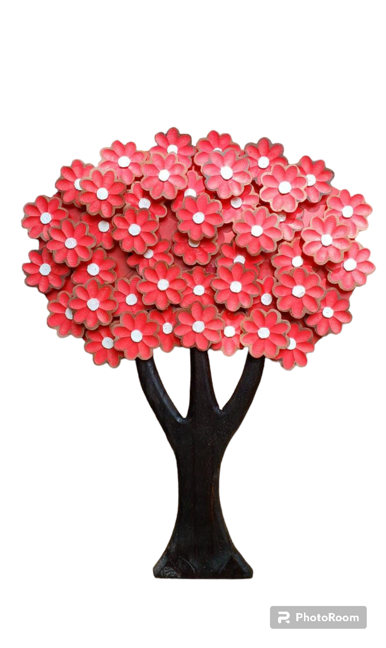 Árvore da vida vermelha é um quadro de rosas de madeira para decoração de ambientes internos.