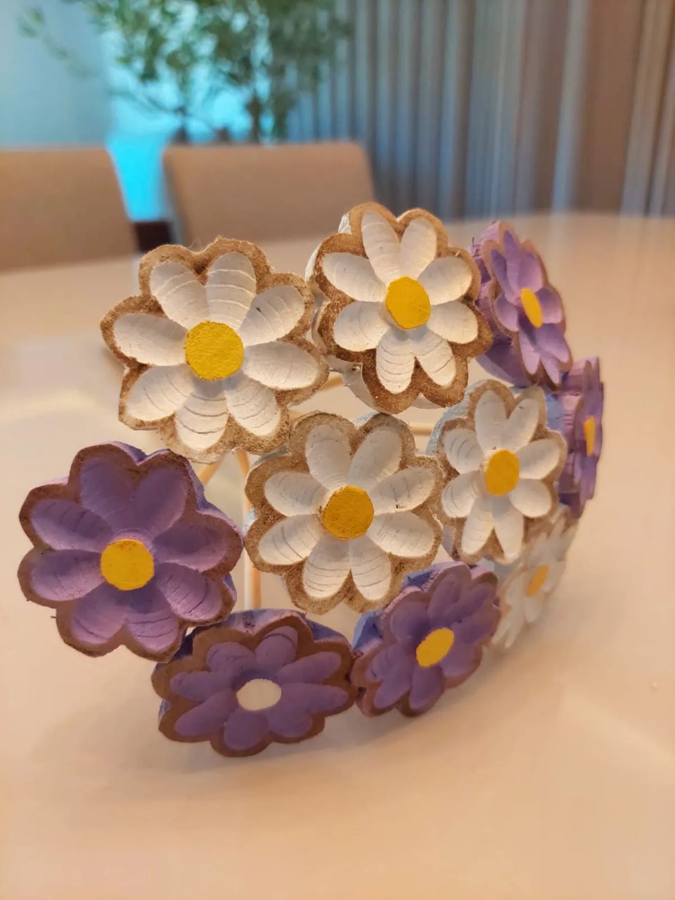 Buquê de rosas de madeira para decoração de ambientes internos.