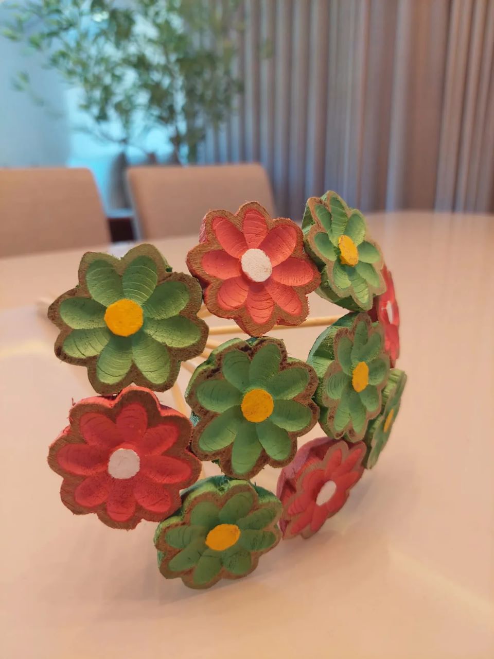 Buquê de rosas de madeira para decoração de ambientes internos.